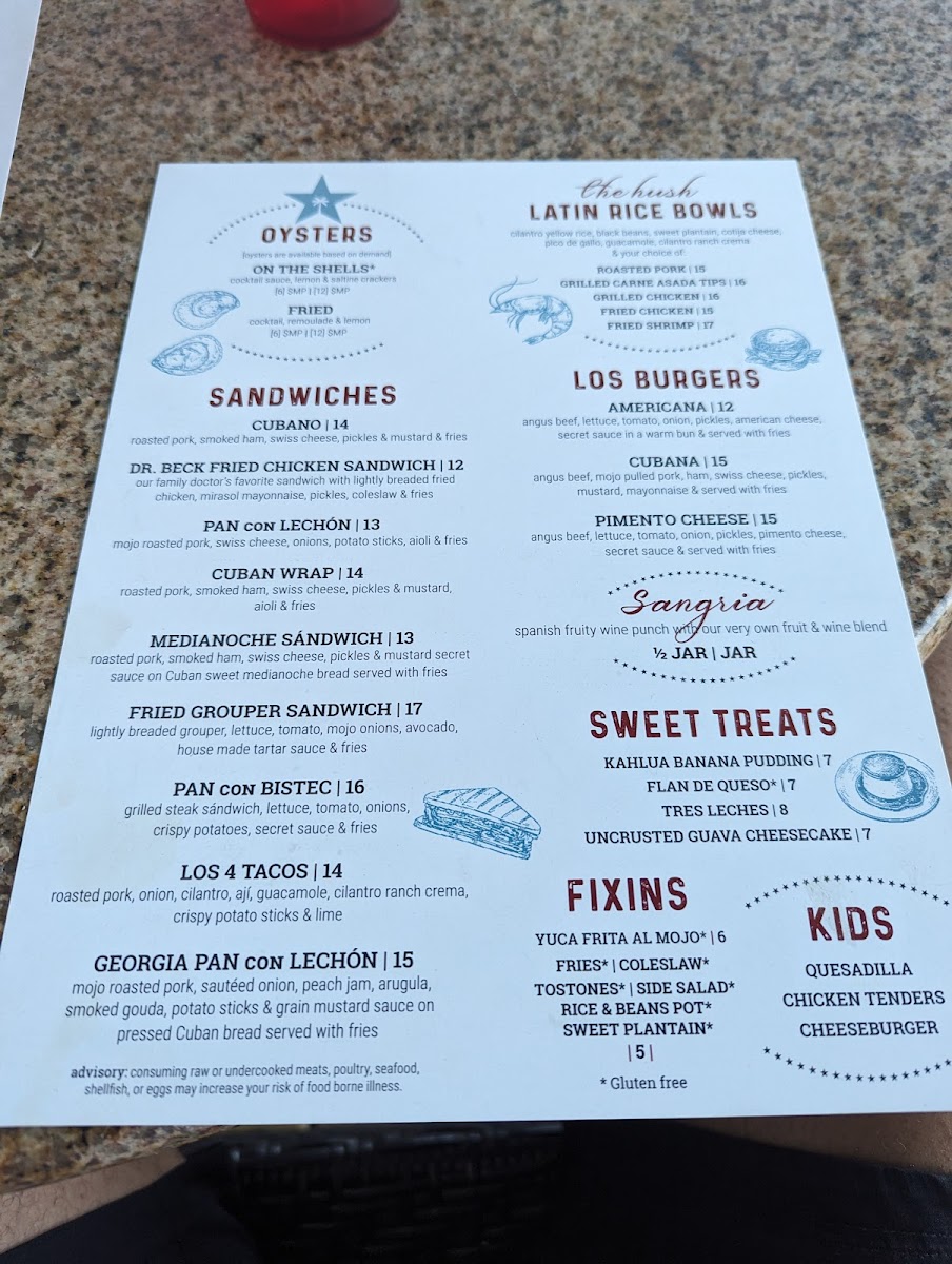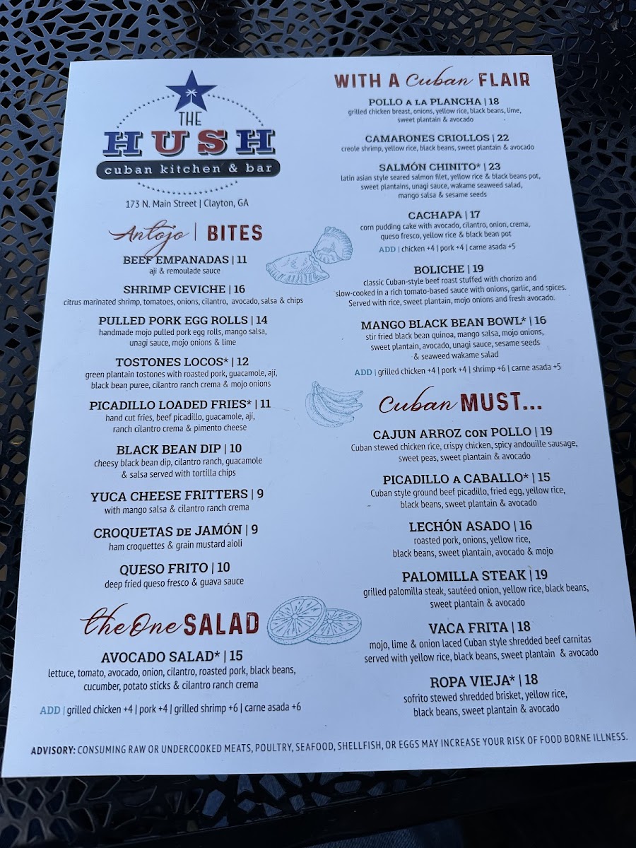 The Hush Cuban kitchen & bar Menu (2025 Update)